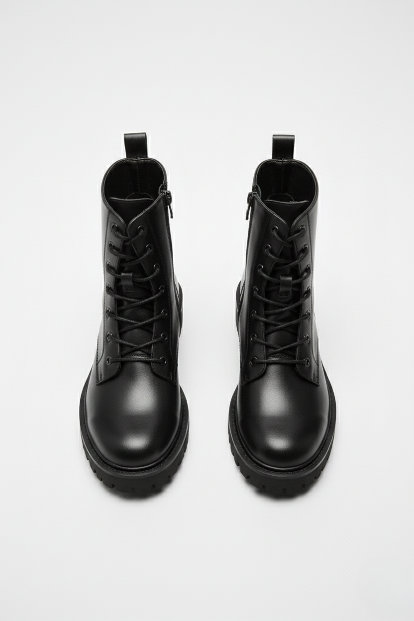 - Dobbelt lukning: snørebånd foran med metaløjer og lynlås i siden for ekstra bekvemmelighed.